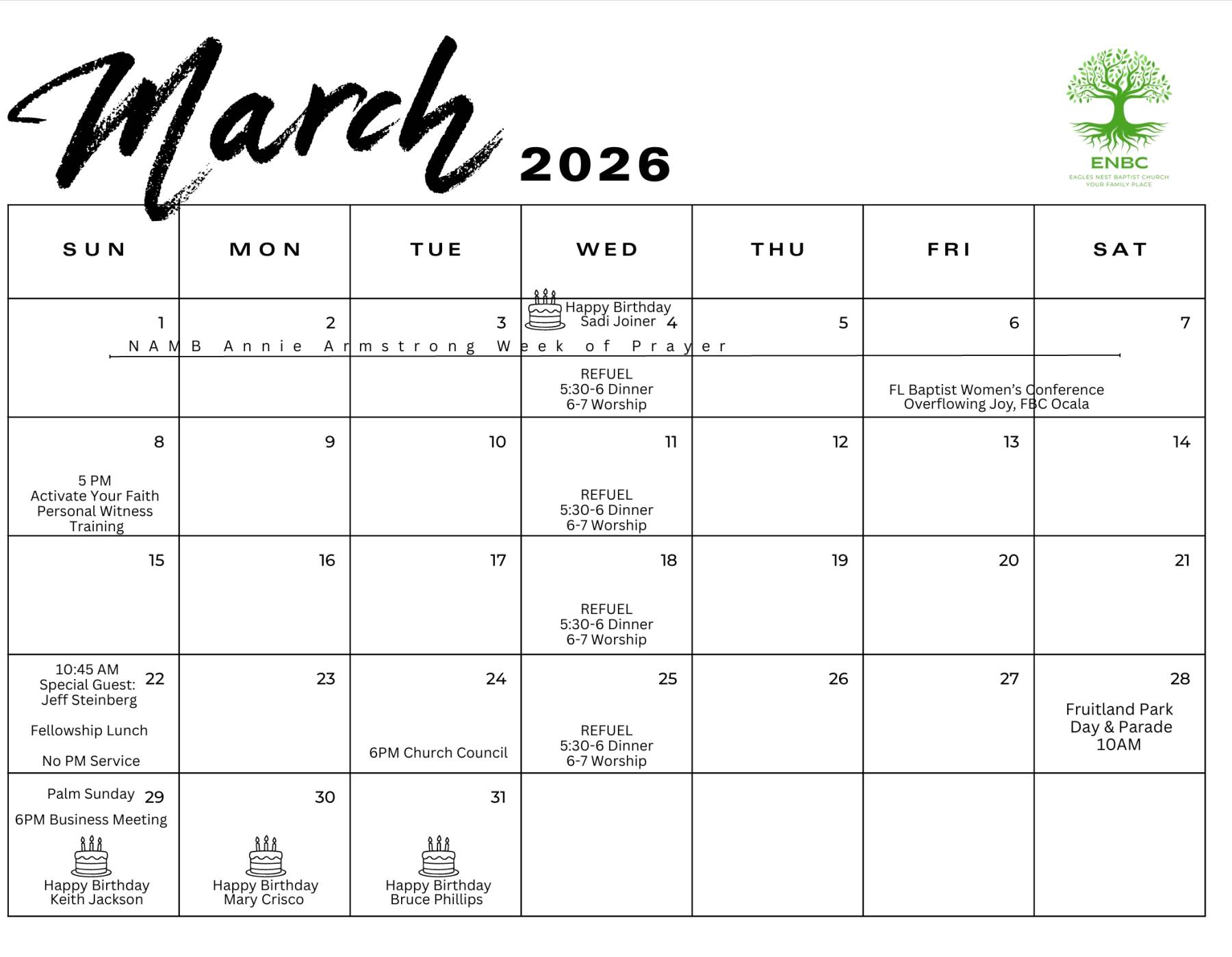 Calendar - March 2026