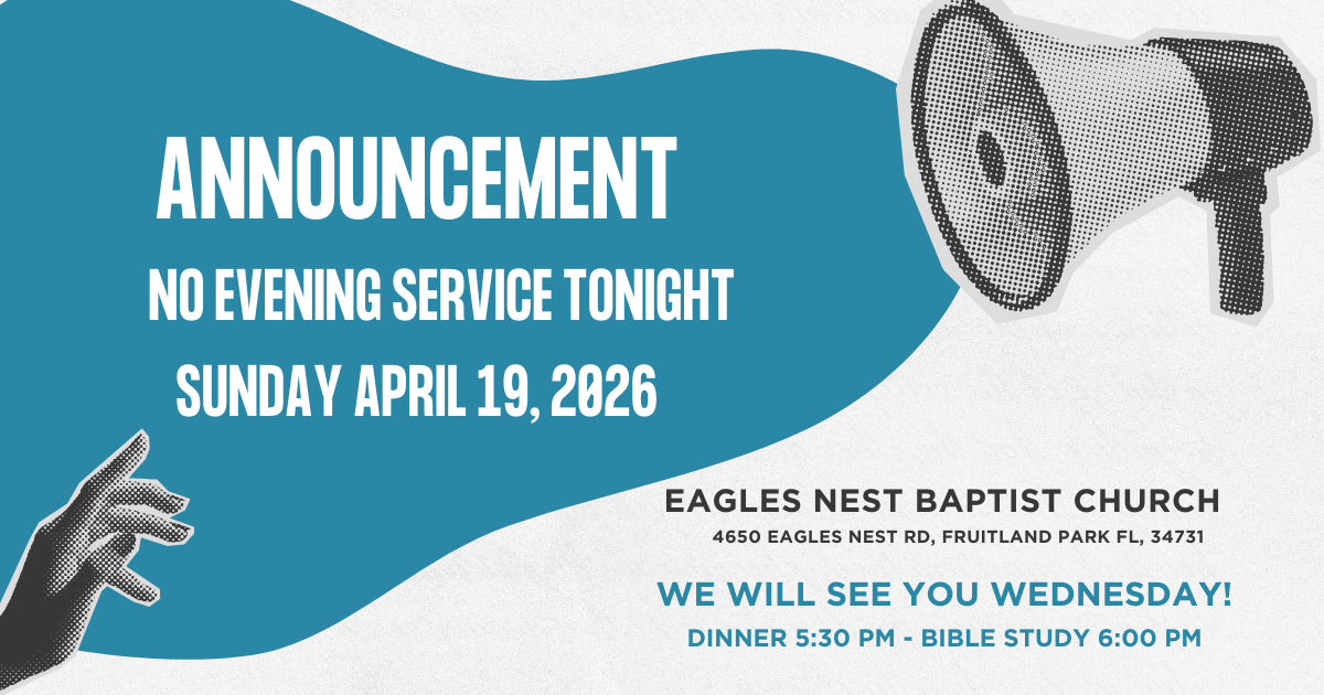 Announcement: No Evening Service Tonight. April 19, 2026 6:00 PM